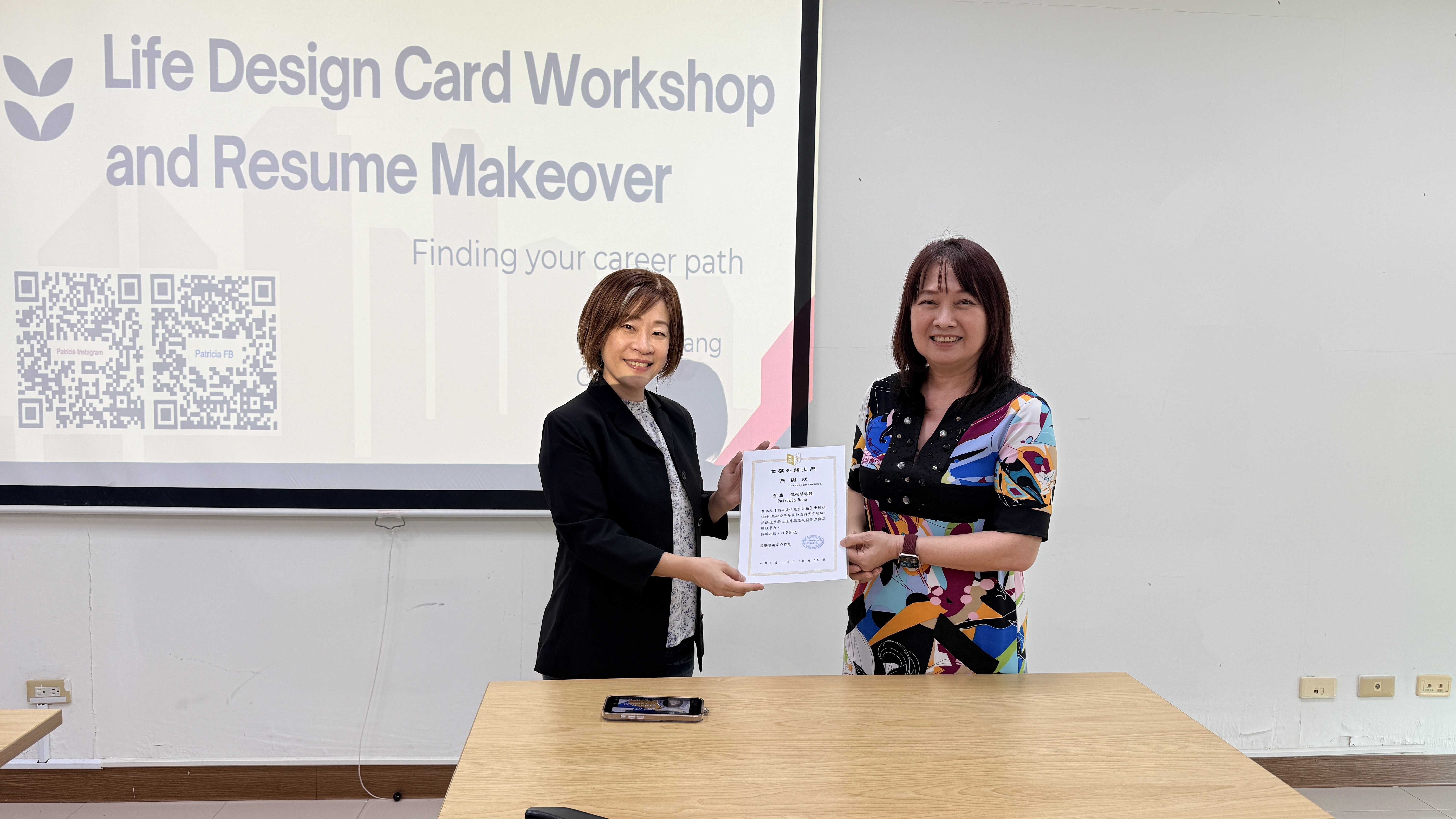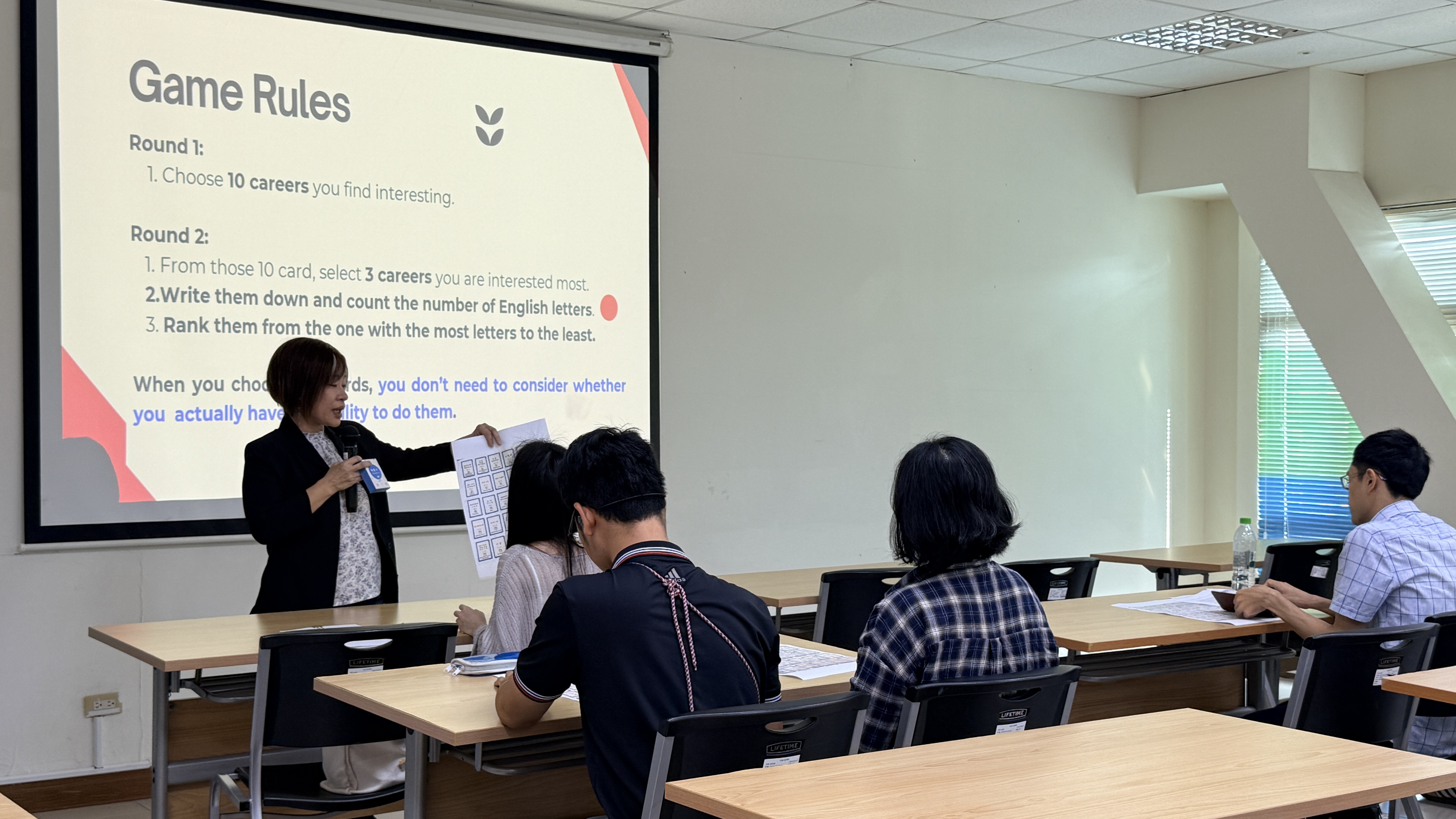 「職涯牌卡履歷健檢」,透過互動式的職涯牌卡活動,協助同學從興趣、性格與價值觀出發,探索自身的職涯方向。同時由專業職涯顧問帶領進行履歷健檢指導,解析企業看重的關鍵要素,提供履歷撰寫與面試準備的實用建議。