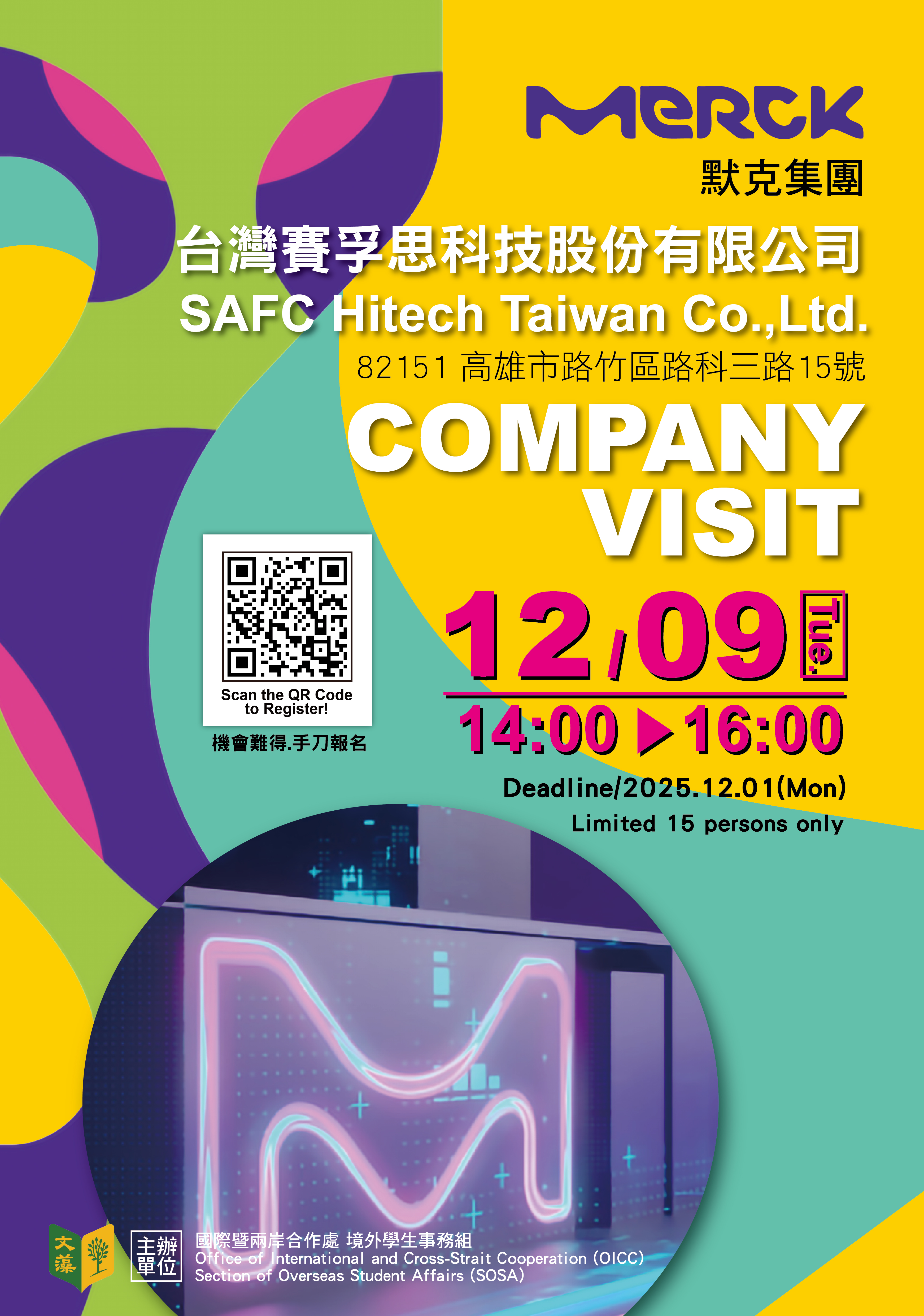 透過現場導覽與與業界專家溝通交流, 同學們對國際企業的生產技術、研發流程以及未來產業趨勢有更深入的理解。 1.了解科技研發與品質管理流程2.與企業主管進行面對面交流3.探索留台就業與實習相關機會4.對未來職涯有更具體方向與啟發