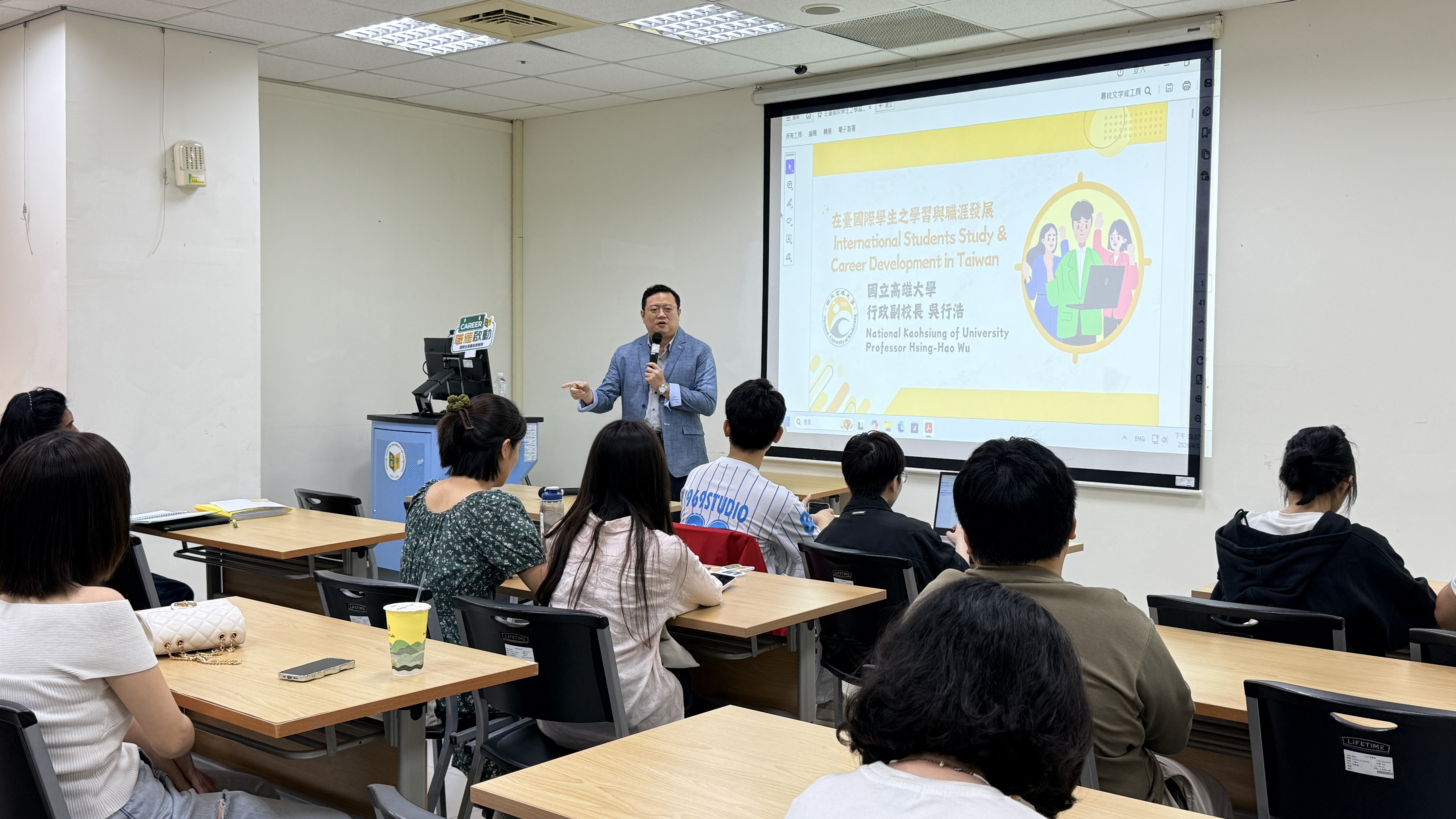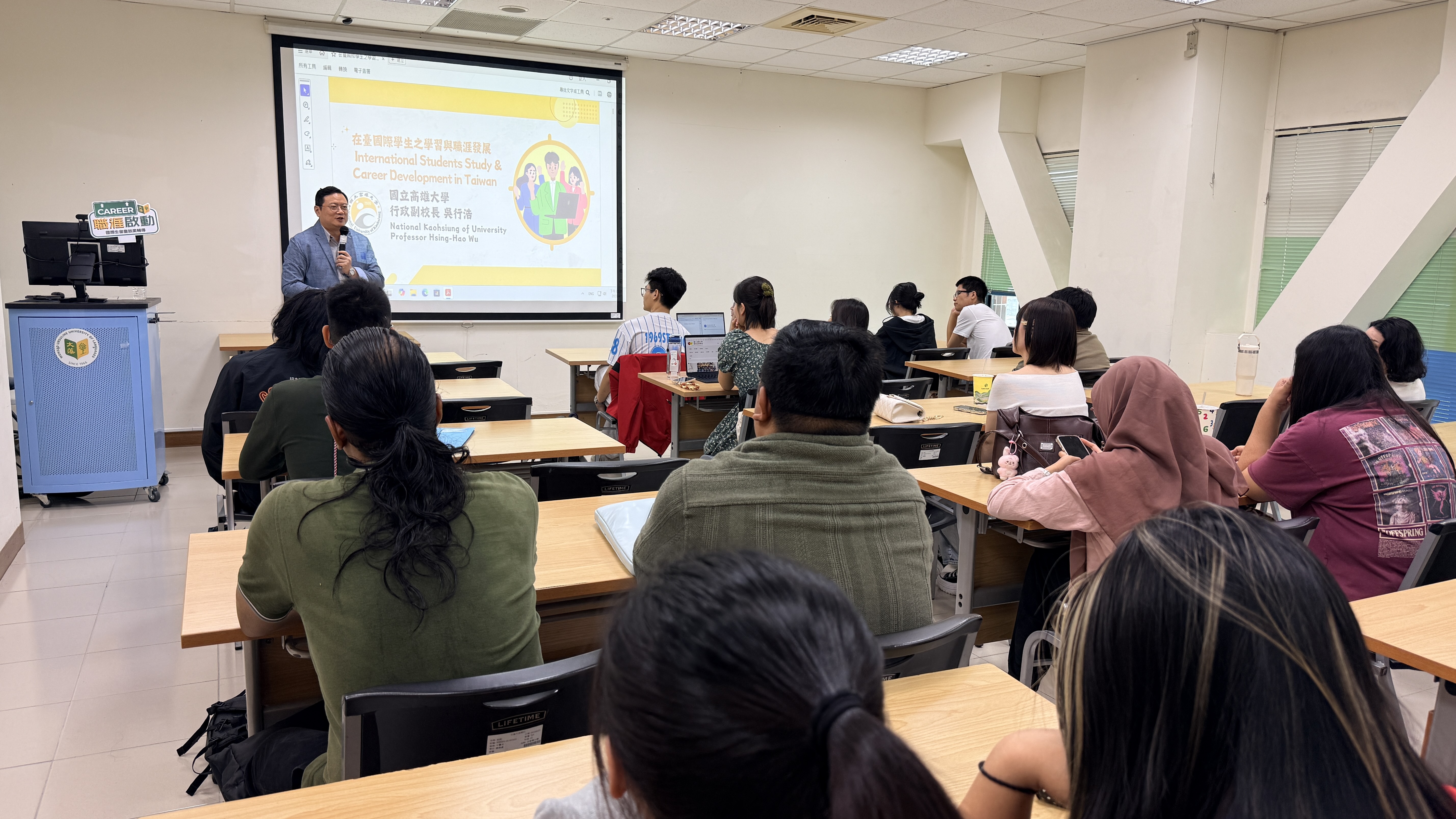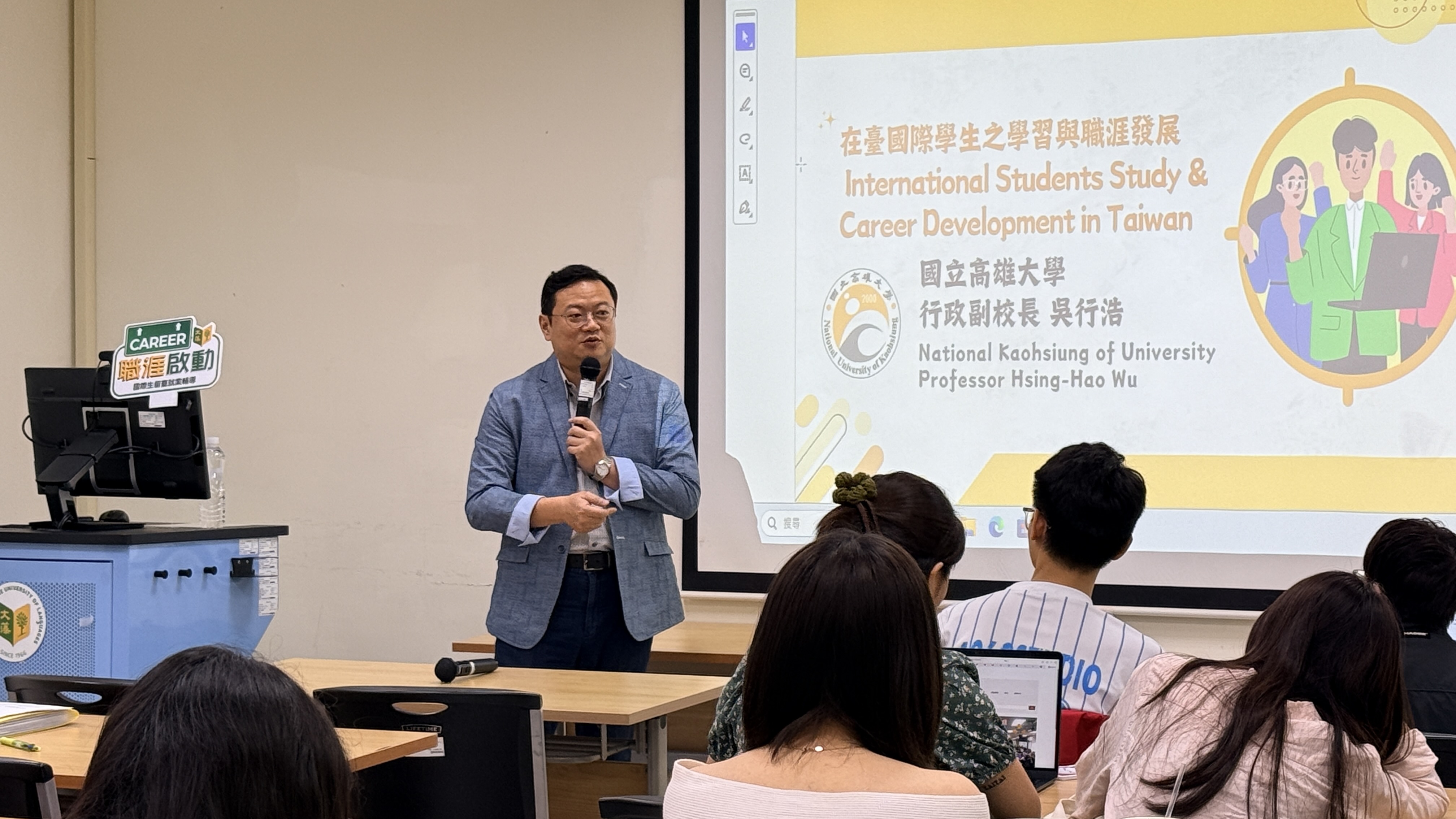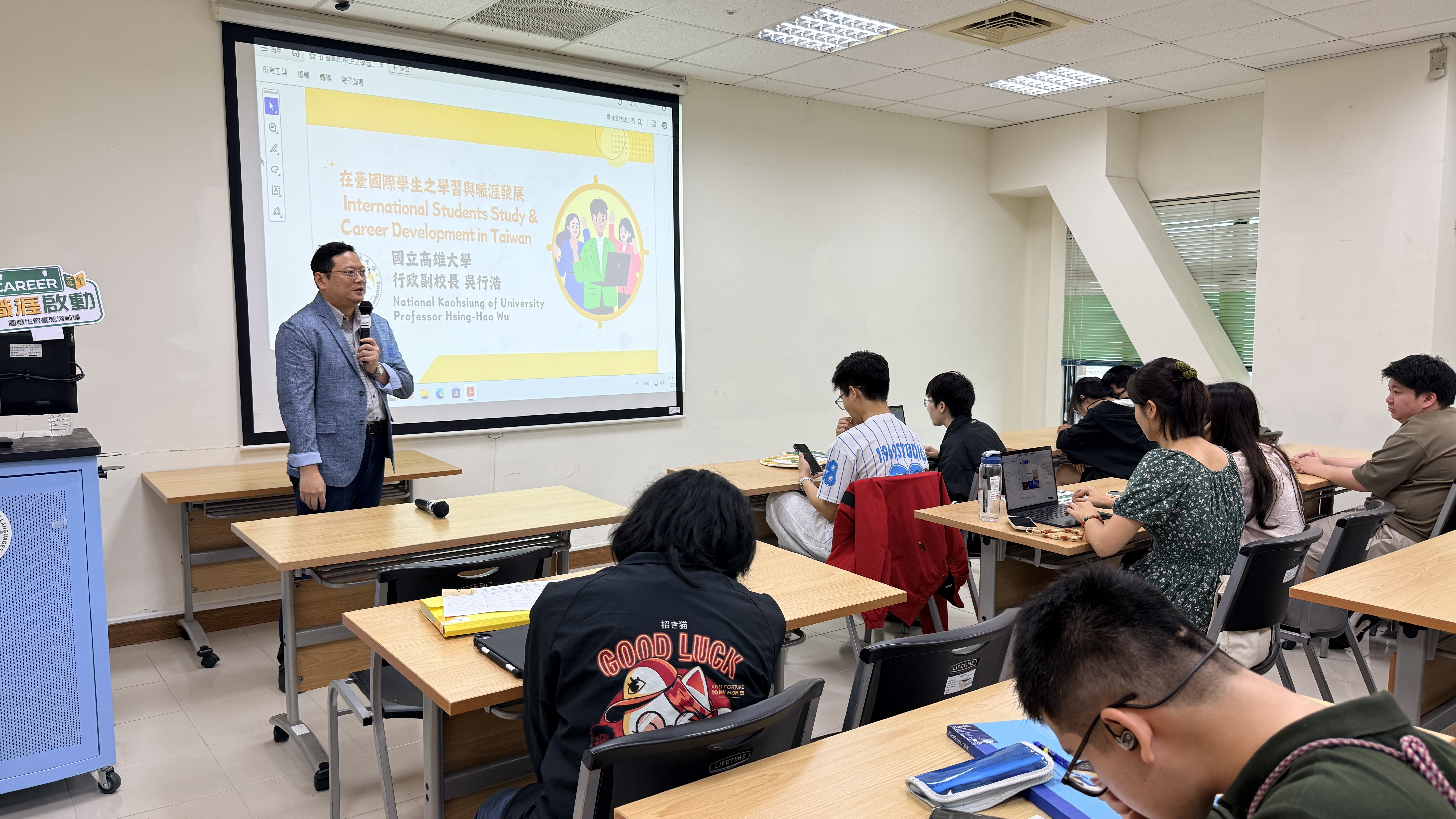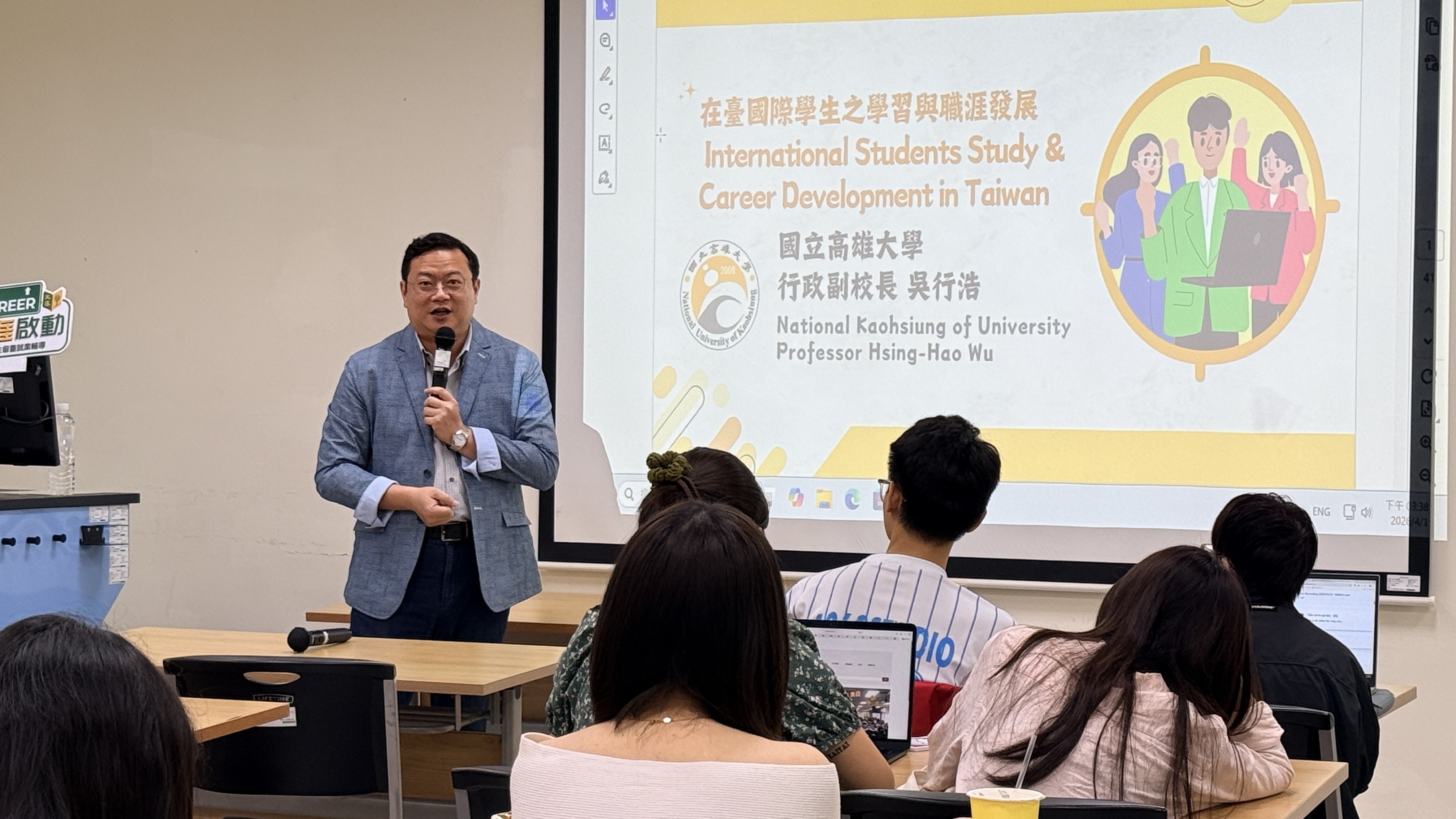 本次「留臺就業法規與職涯發展講座」,邀請 吳行浩 副校長擔任講者,針對國際學生在臺學習與畢業後留臺發展議題進行專題分享。