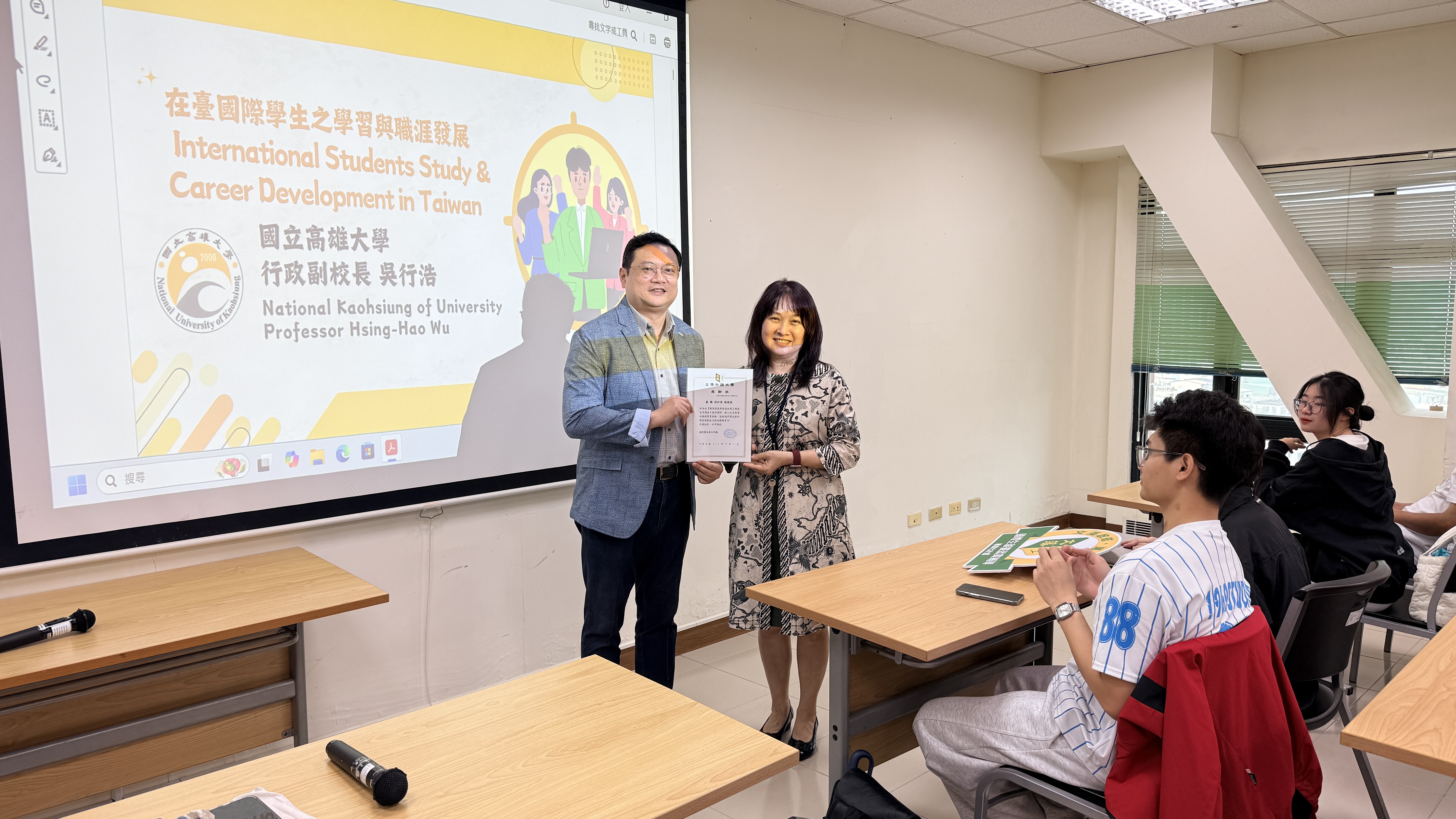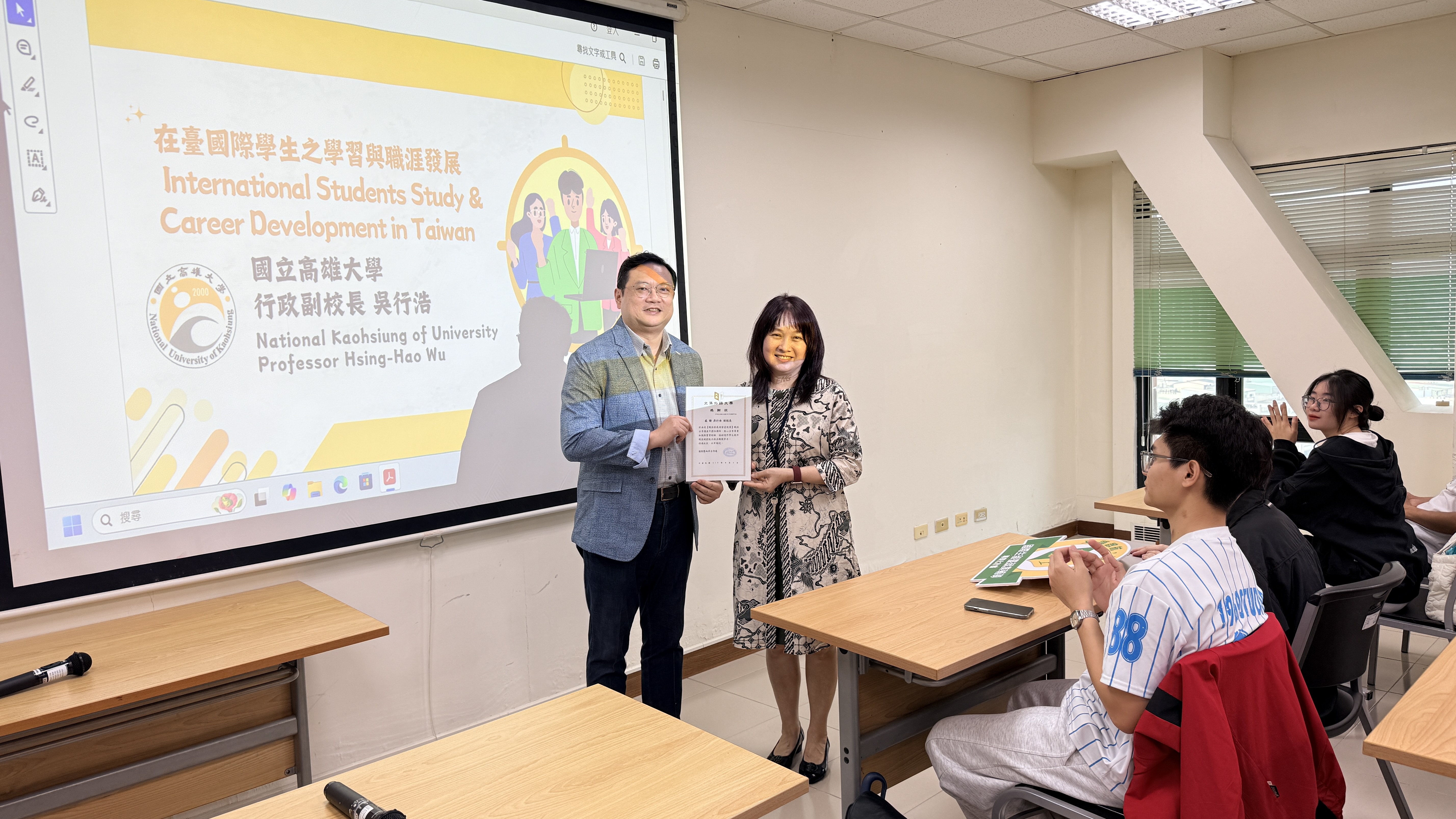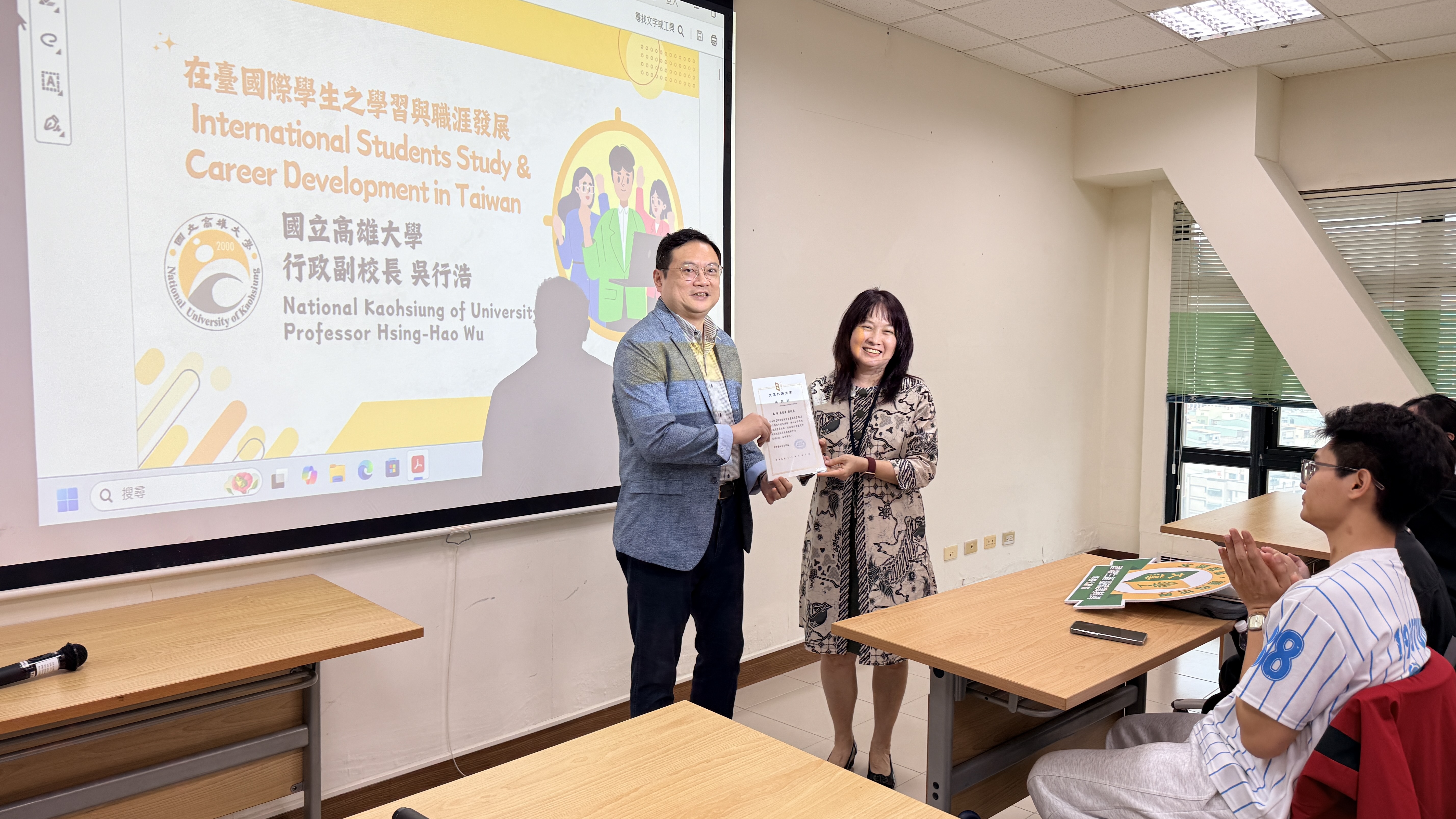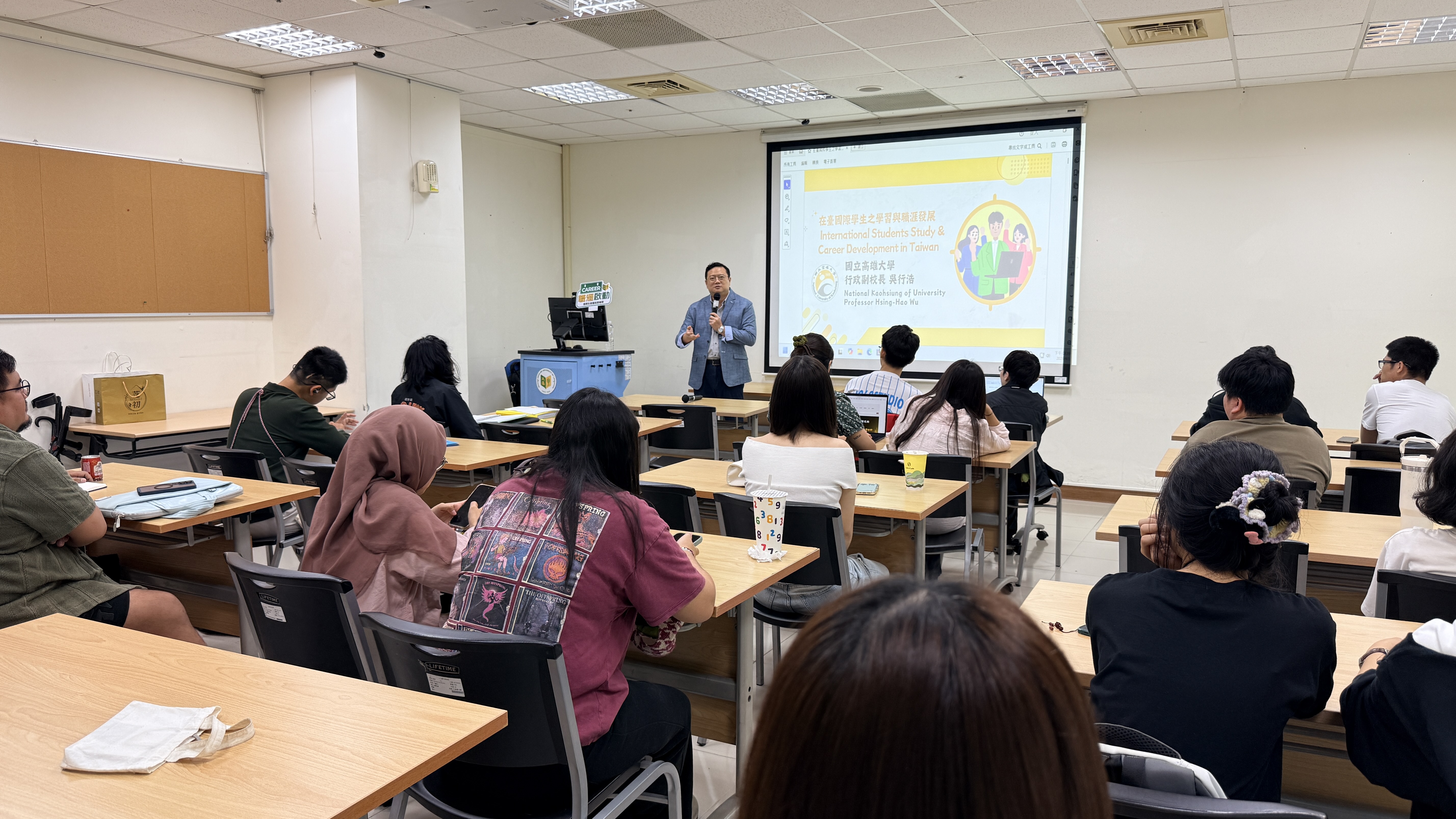本次「留臺就業法規與職涯發展講座」,邀請 吳行浩 副校長擔任講者,針對國際學生在臺學習與畢業後留臺發展議題進行專題分享。
