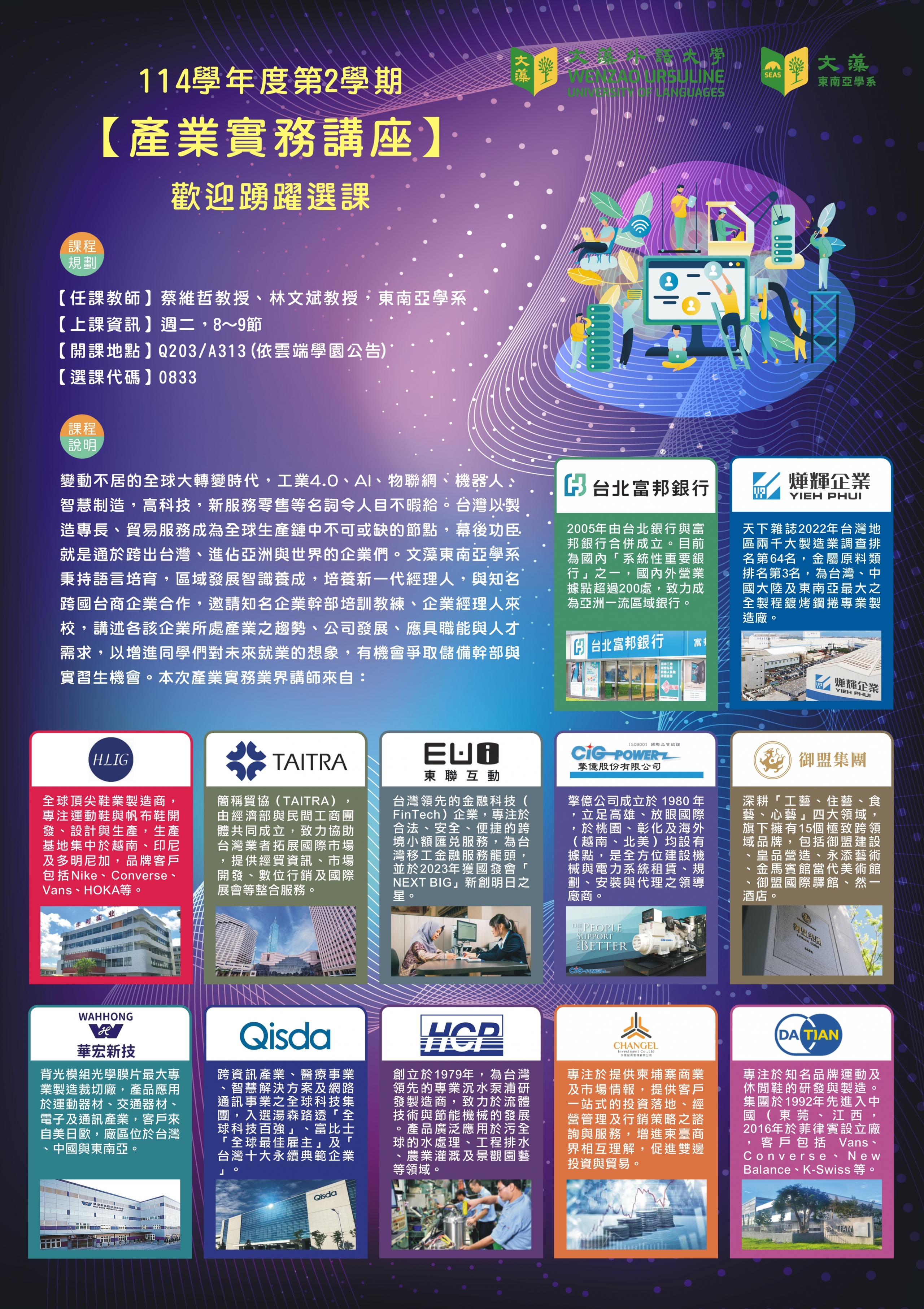 114-2學年【產業實務講座課程|歡迎踴躍選修】東南亞學系